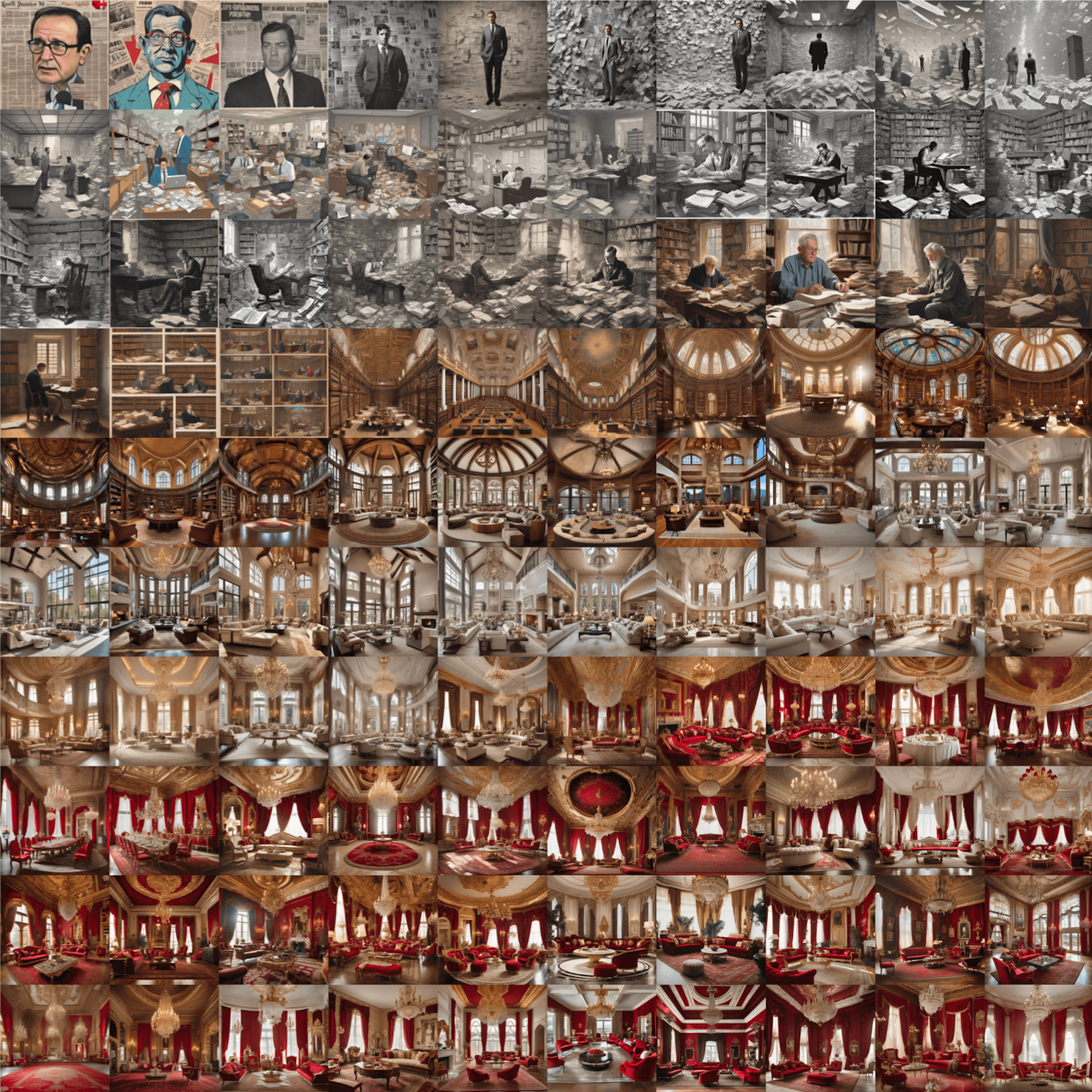 例えば、彼らは「首相は戦略文書に没頭し、差し迫った軍事行動の重圧を抱えながら、脆弱な平和協定を国民に売り込もうとしていた」という画像プロンプトから始めた。生成された画像はその後AIによってキャプションが付けられた。このキャプションが次の画像を生成するプロンプトとして使用された。