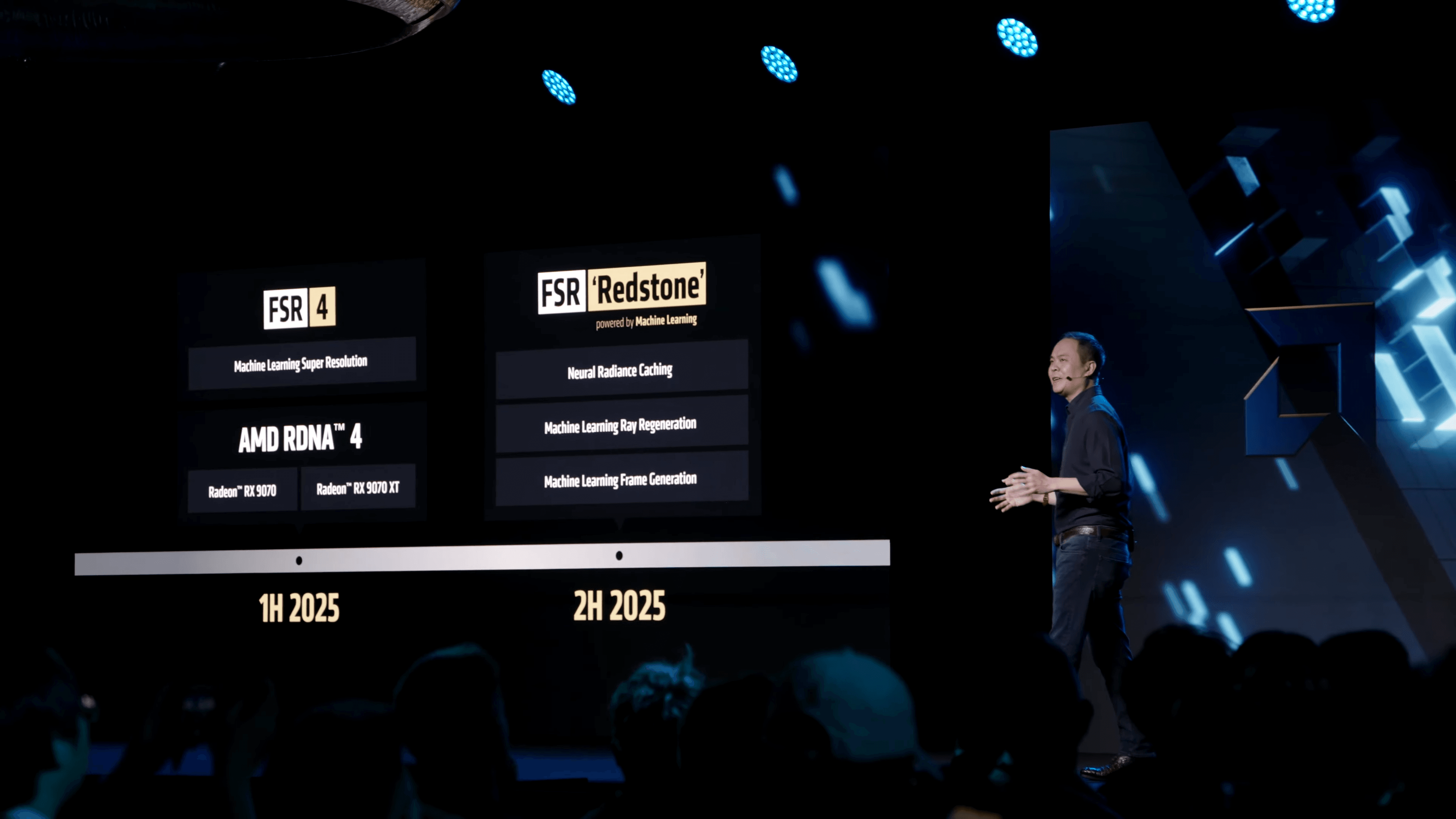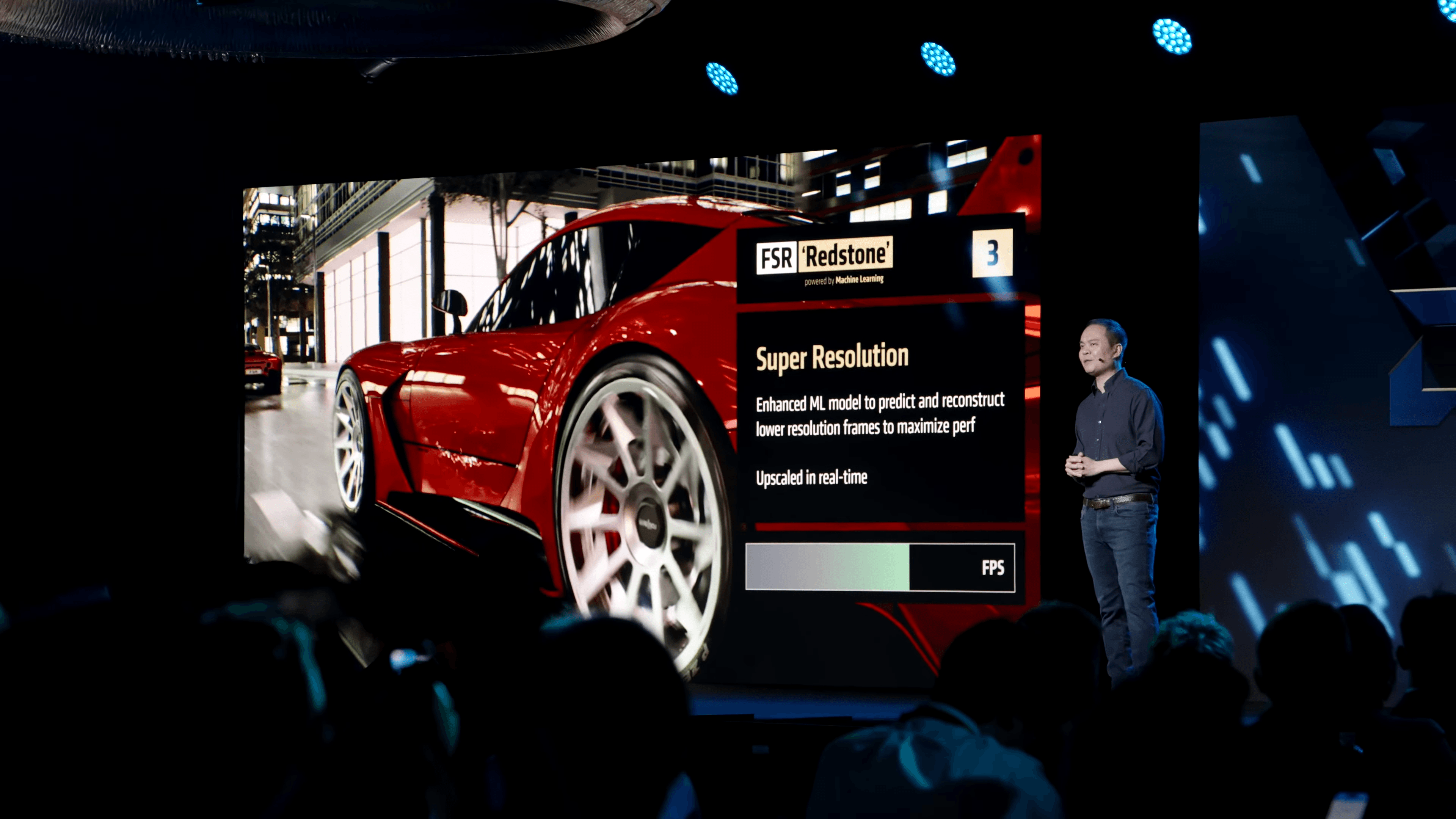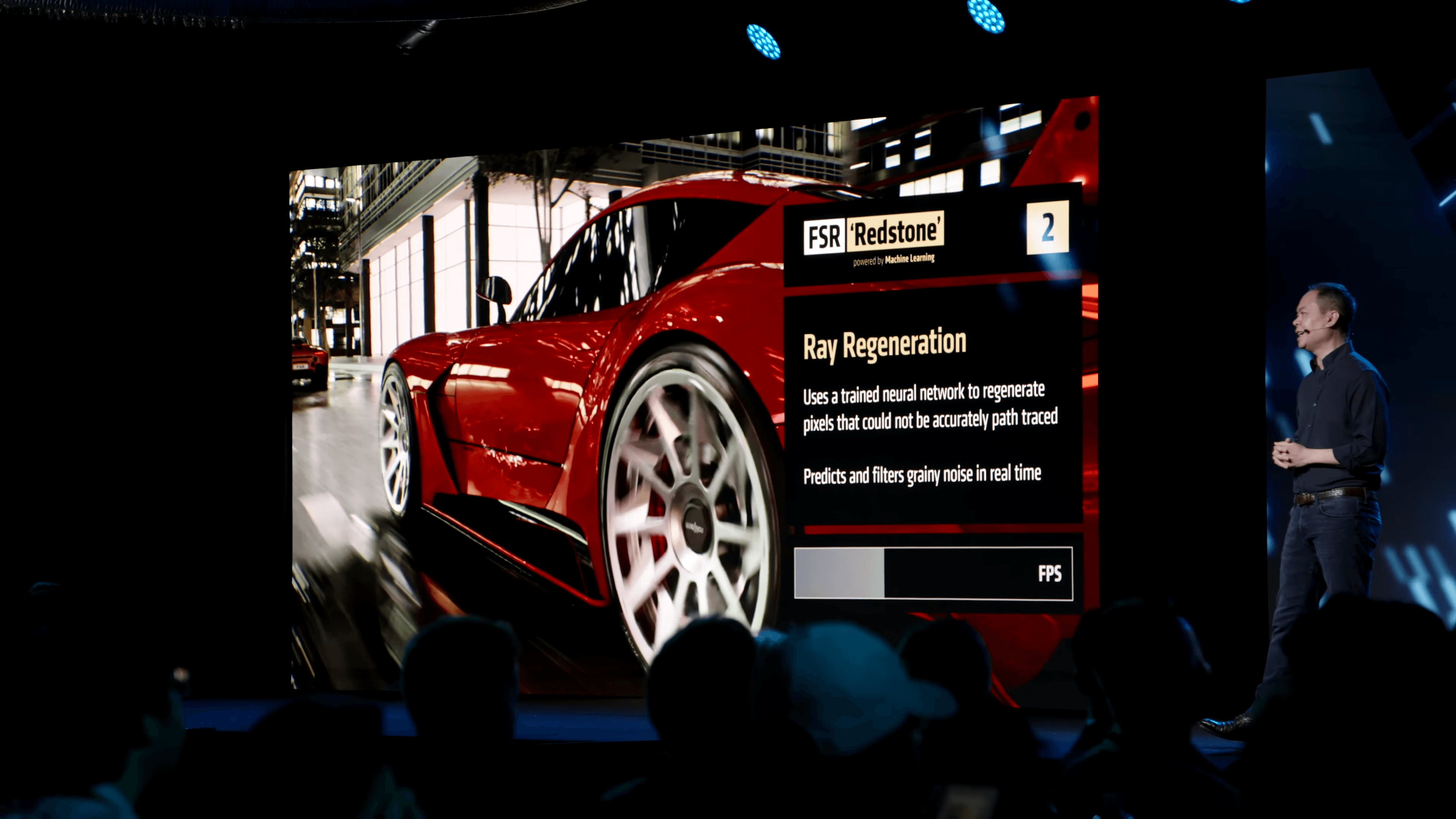 そして、今回の発表で最も大きな興奮を呼んだのが、コードネーム「FSR Redstone」だ。これはFSR 4のさらに未来の拡張版と位置づけられており、2025年後半のローンチが予定されている。FSR RedstoneはRDNA 4アーキテクチャを搭載したGPU専用となる見込みだ。AMDのJack Huynh氏も「FSR RedstoneはRDNA 4ユーザーにとってゲームチェンジャーになるだろう」と述べており、その期待の高さが伺える。