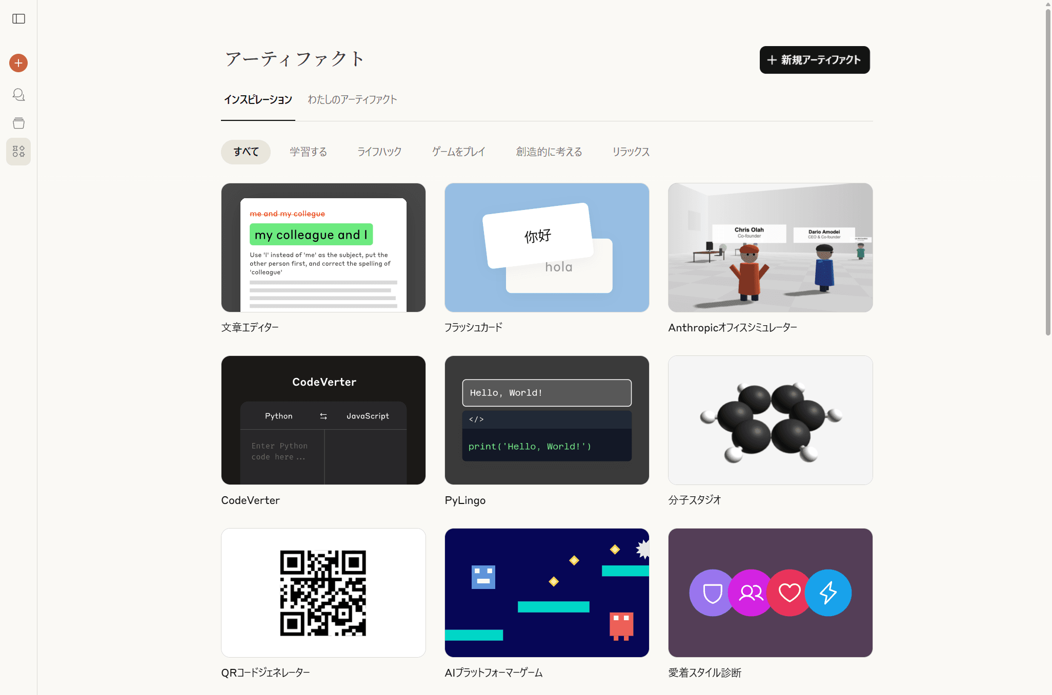 アーティファクトを使用してWebアプリや生産性向上ツールを作成したり、文書を作成したいユーザーは、claude.ai/artifacts を覗いてみよう。