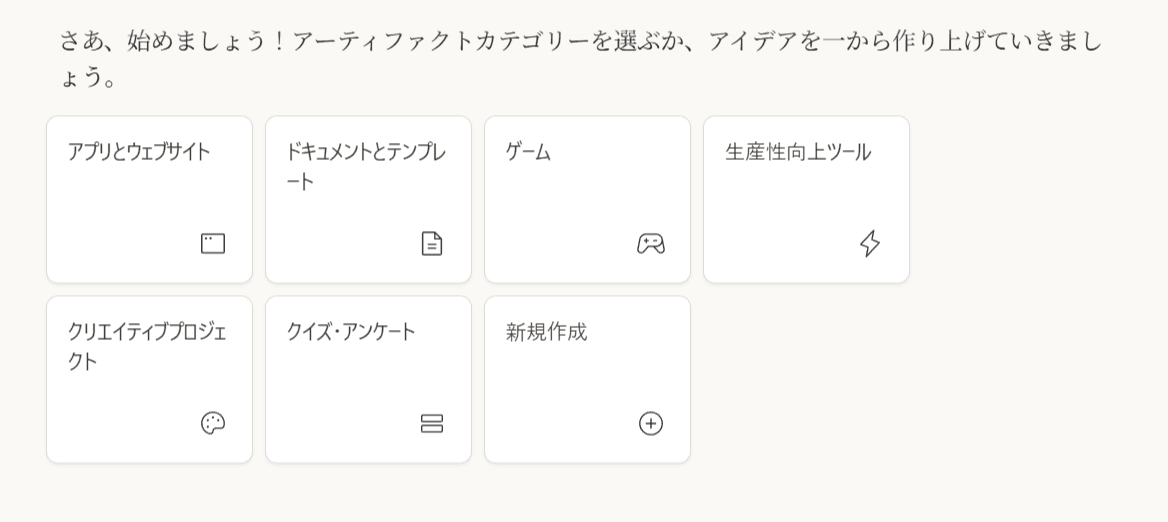 全く新しいアプリケーションを作成することも出来るし、既にいくつか用意されているアーティファクトを試し、それらに改良を加えることも、カテゴリから作成することも可能だ。