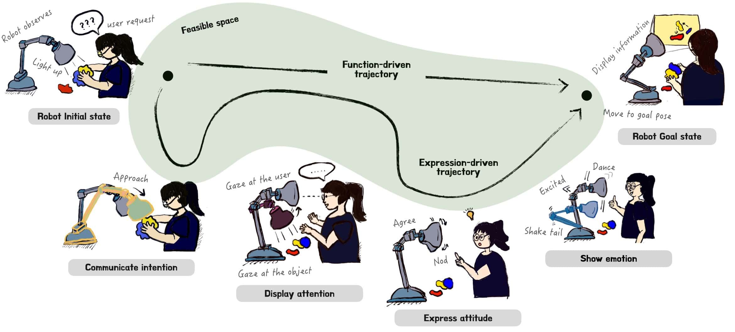 研究論文によると、人間は動きやわずかな変化に敏感であり、ロボットが人間と自然にやり取りするためには、機能性だけでなく、意図や感情を伝える表現力豊かな動きが不可欠であると指摘する。「ロボットの動きのデザインは、タスクの達成や空間的制約、時間効率といった従来の機能的な考慮事項と並んで、意図、注意、感情といった表現力豊かな性質を統合すべきである」と研究チームは述べている。