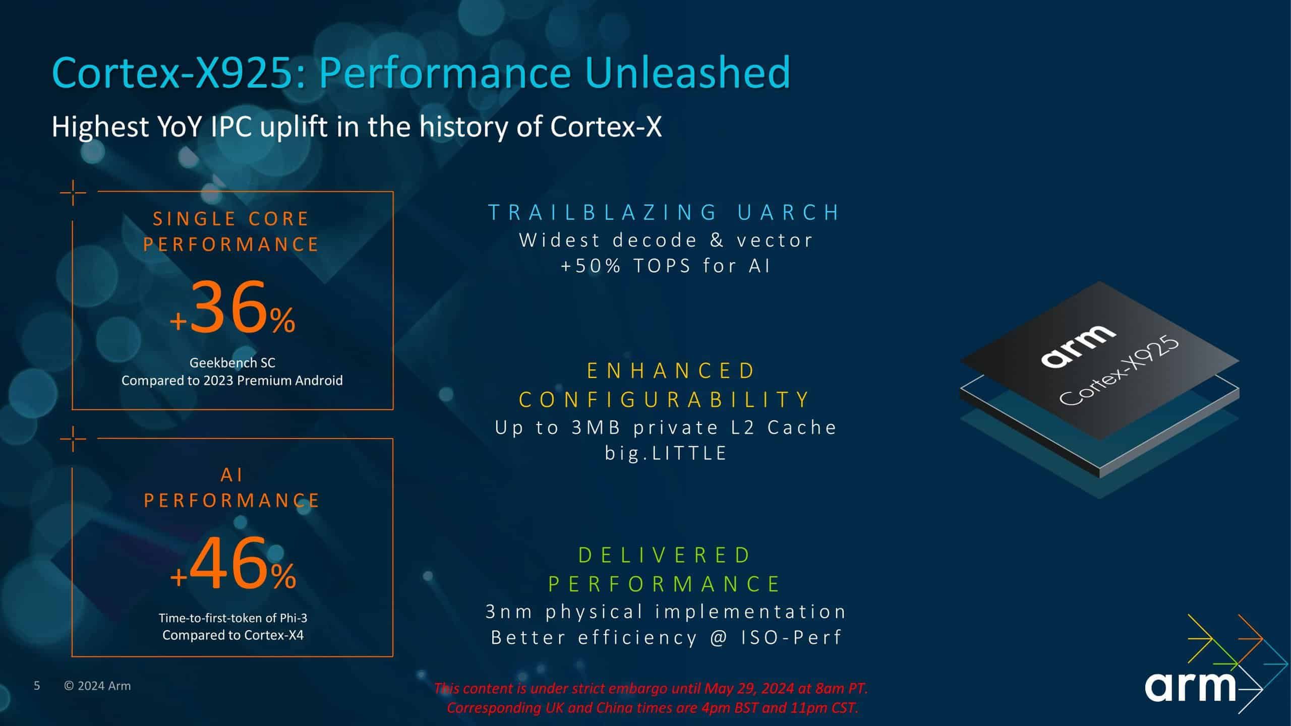 新しいArm Cortex-X925は、今年の終わりまでに主要なプレミアムモバイル製品に搭載される予定だ。
