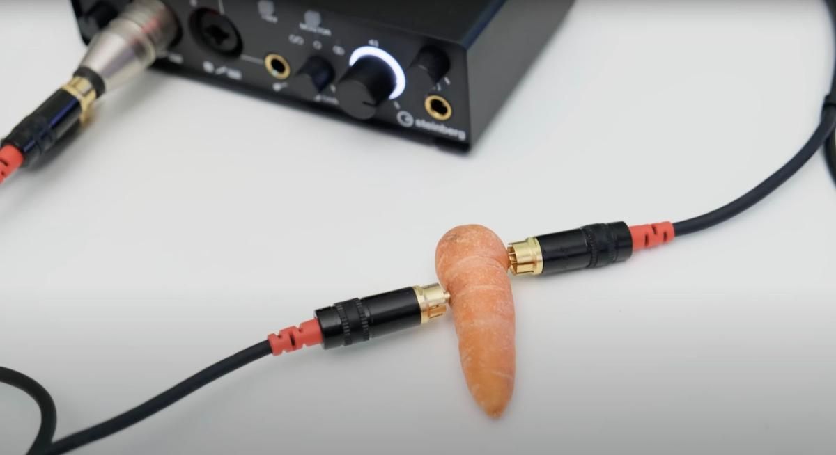 Panoの実験が孤立した事例ではないことも見逃せない。2024年末、オーディオエンジニアのJulian Krauseはベビーキャロット(小さいニンジン)をRCAアダプターとして使用するテストを実施した。荒唐無稽に見えるこの実験でも、信号対雑音比は約110dB(A)、歪みはごくわずか、干渉は-100dB付近に埋もれていた。ニンジンによる影響は4〜6dBの信号低下とわずかな高域のブーストにとどまり、ブラインドリスニングで検知できるレベルではなかった。