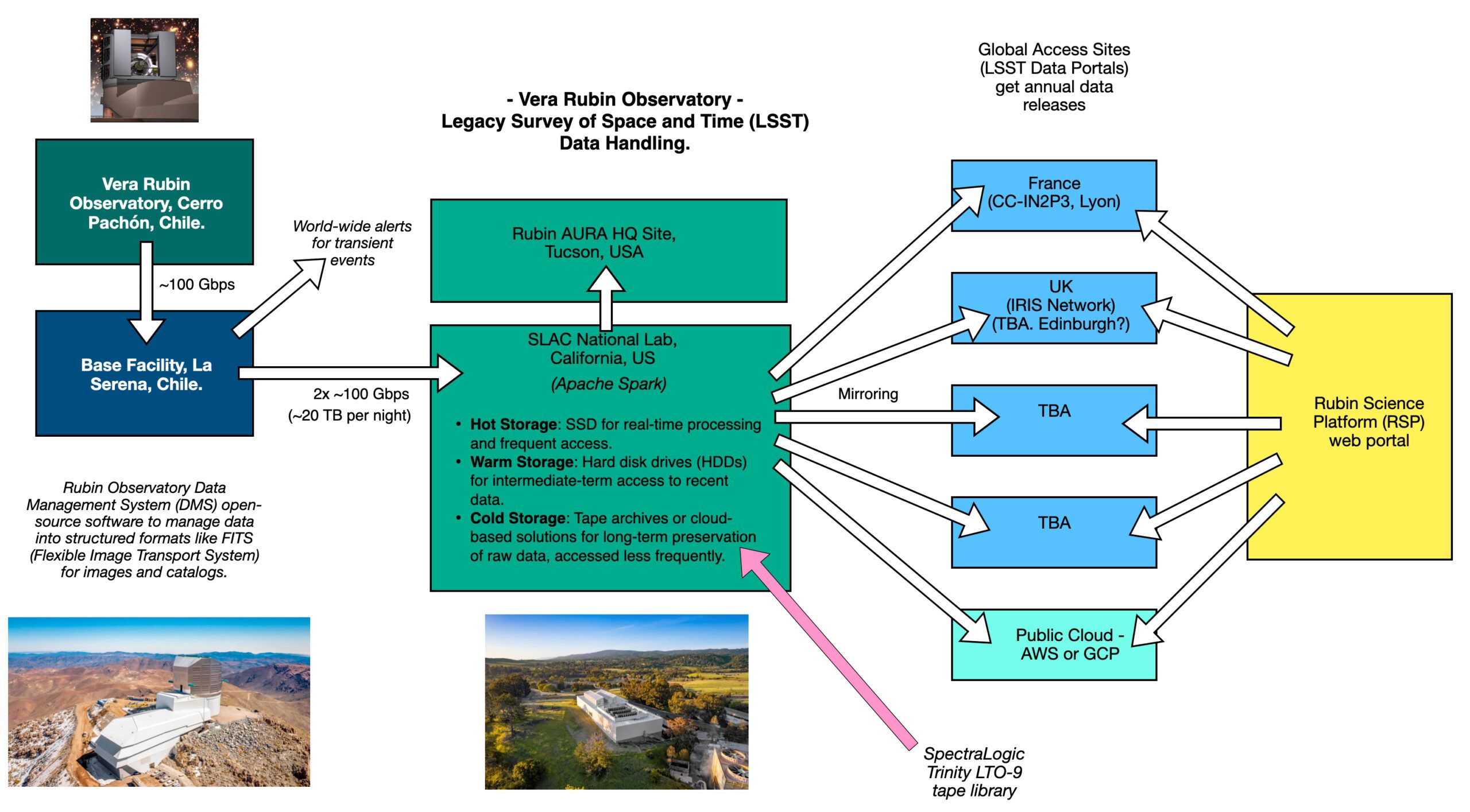 - コールドストレージ(テープ): 処理が完了し、長期的なアーカイブが目的となる膨大な生画像データや過去のデータリリースは、最も安価で信頼性の高い磁気テープに保存される。