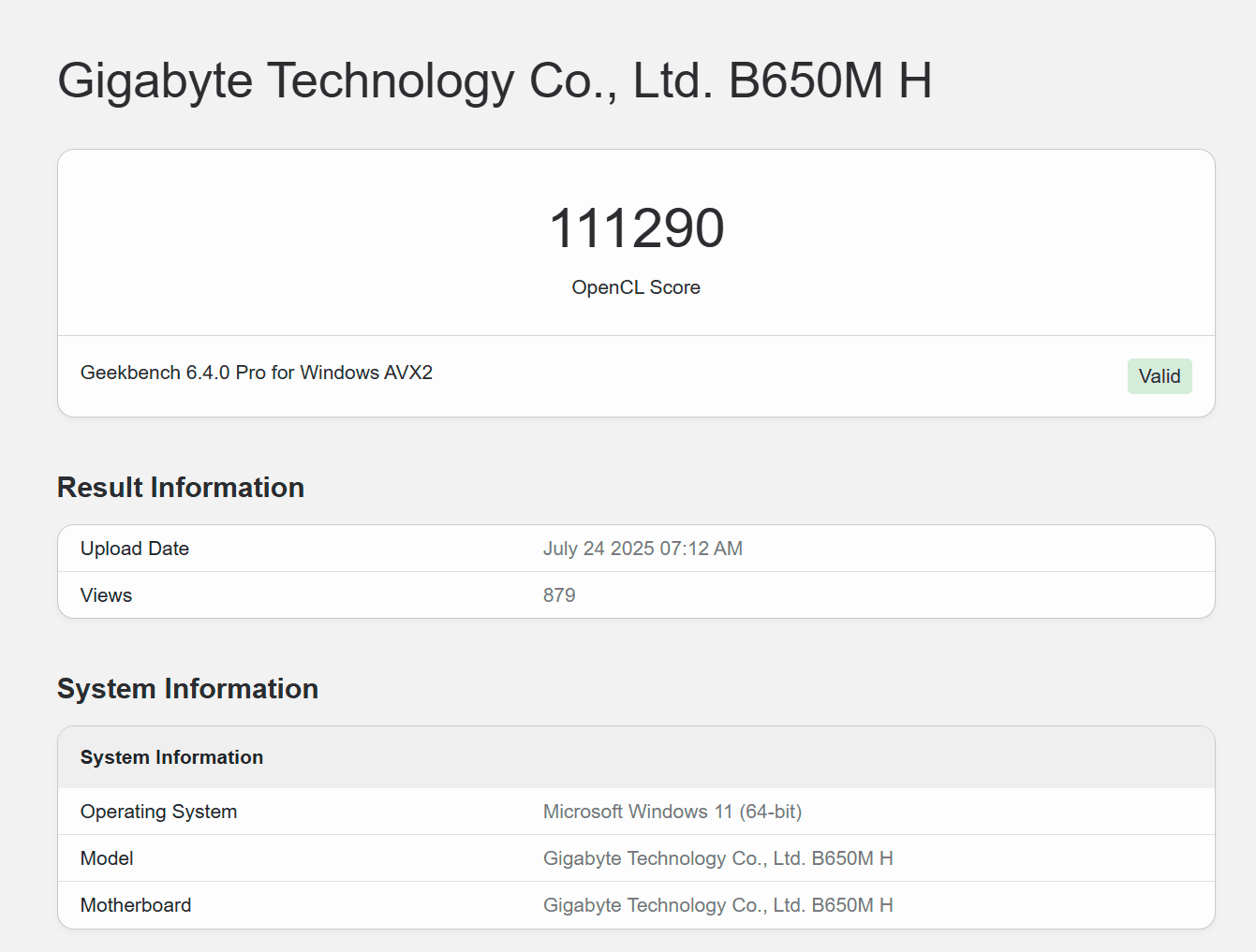 - Geekbench Browser: Gigabyte Technology Co., Ltd. B650M H