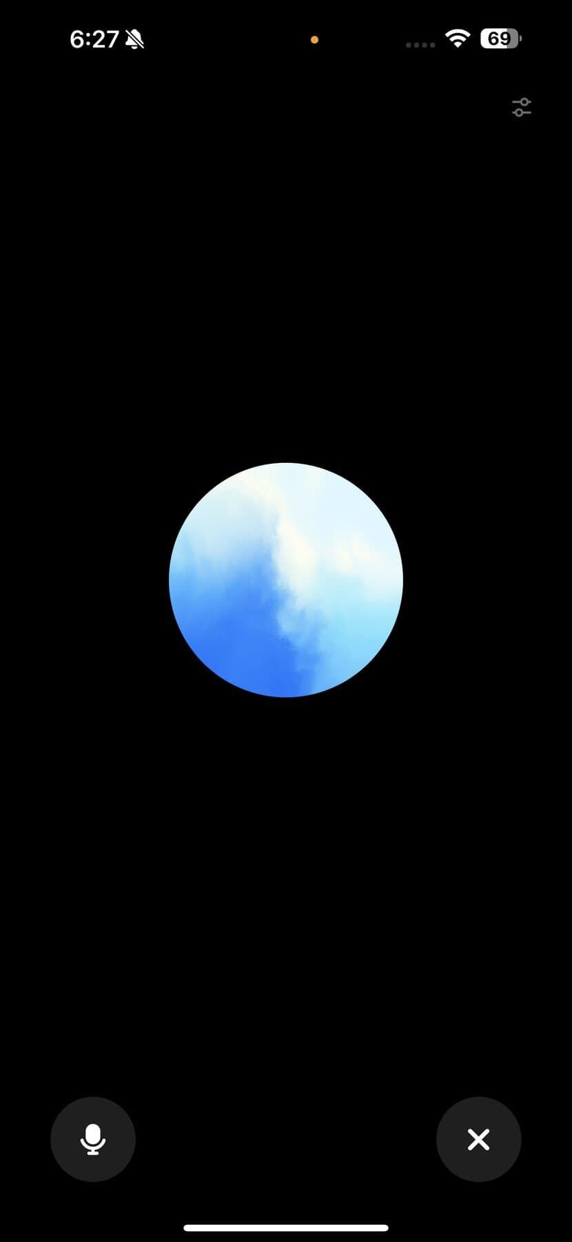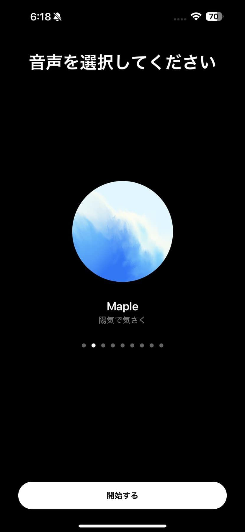 UIはシンプルな物で、中央に水色のグラデーション球体が表示されたもので、こちらの発言やChatGPTの発言に応じて大きさやとなる。