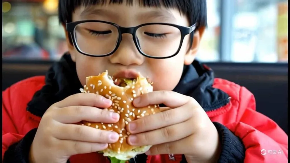 A Chinese boy wearing glasses enjoys a delicious cheeseburger with his eyes closed in a fast food restaurant pic.twitter.com/sdgZBW6bFK