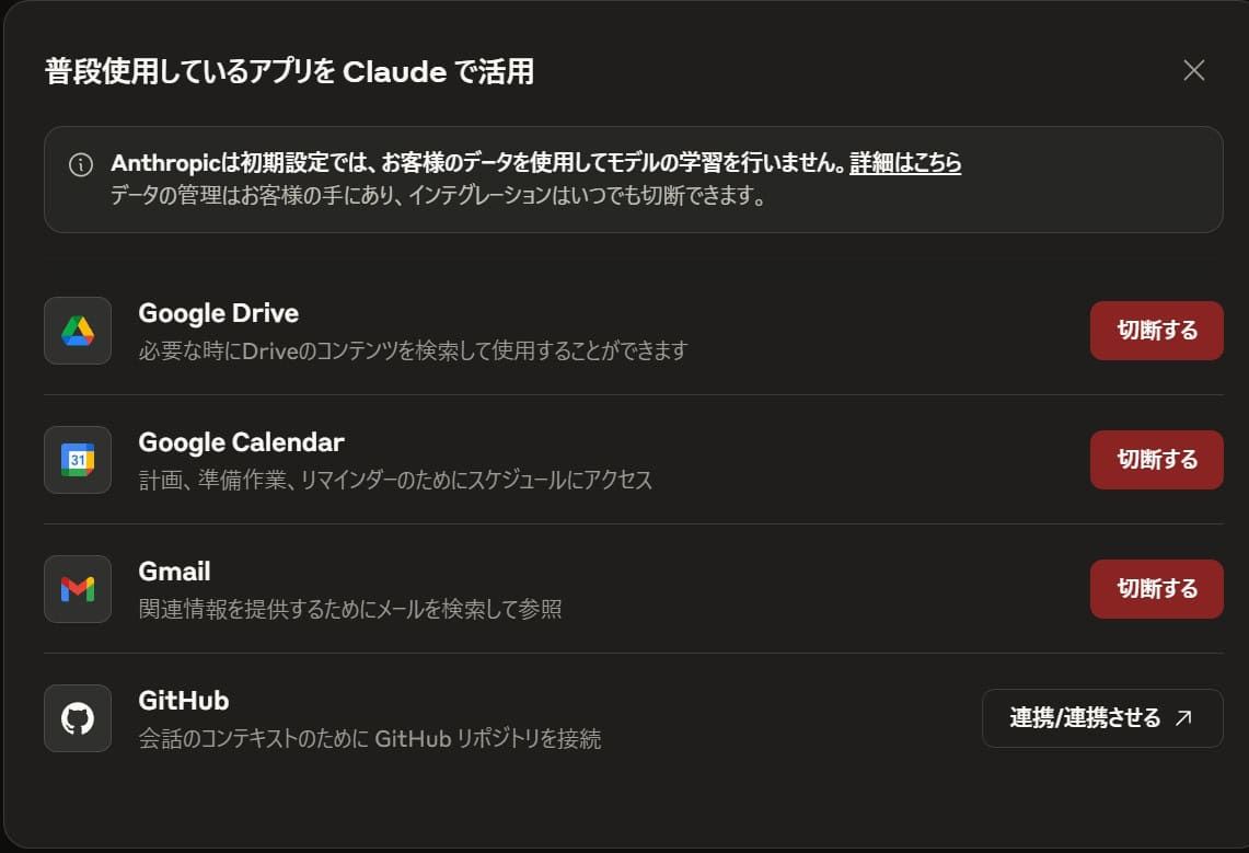 個人や企業の機密情報が含まれるGmailやGoogleドキュメントへのアクセス許可には、当然セキュリティに関する懸念が伴う。Anthropicは、同社がユーザーデータをデフォルトでモデルのトレーニングに使用しないこと、そしてGoogle Workspaceのような外部サービスに対して厳格な認証およびアクセス制御メカニズムを実装していることを説明している。