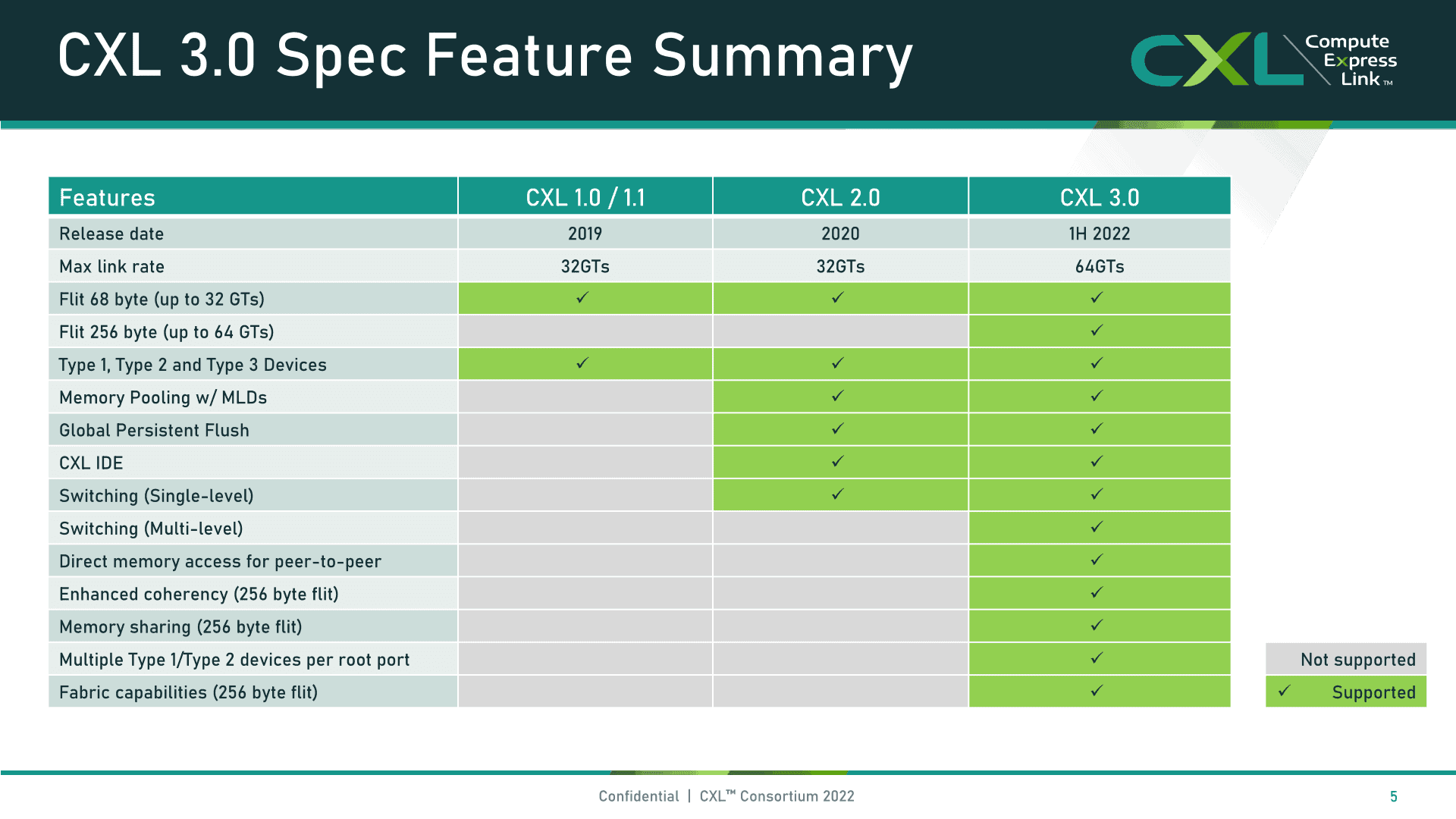 また、接続されたデバイス間のネットワーク的なトポロジーを可能にするマルチレベルスイッチング、メモリ共有、接続されたアクセラレータ間のピアツーピア通信のためのダイレクトメモリアクセス(DMA)などをサポートし、一部のユースケースでCPUオーバーヘッドをなくすなど、注目すべき改良が施されている。