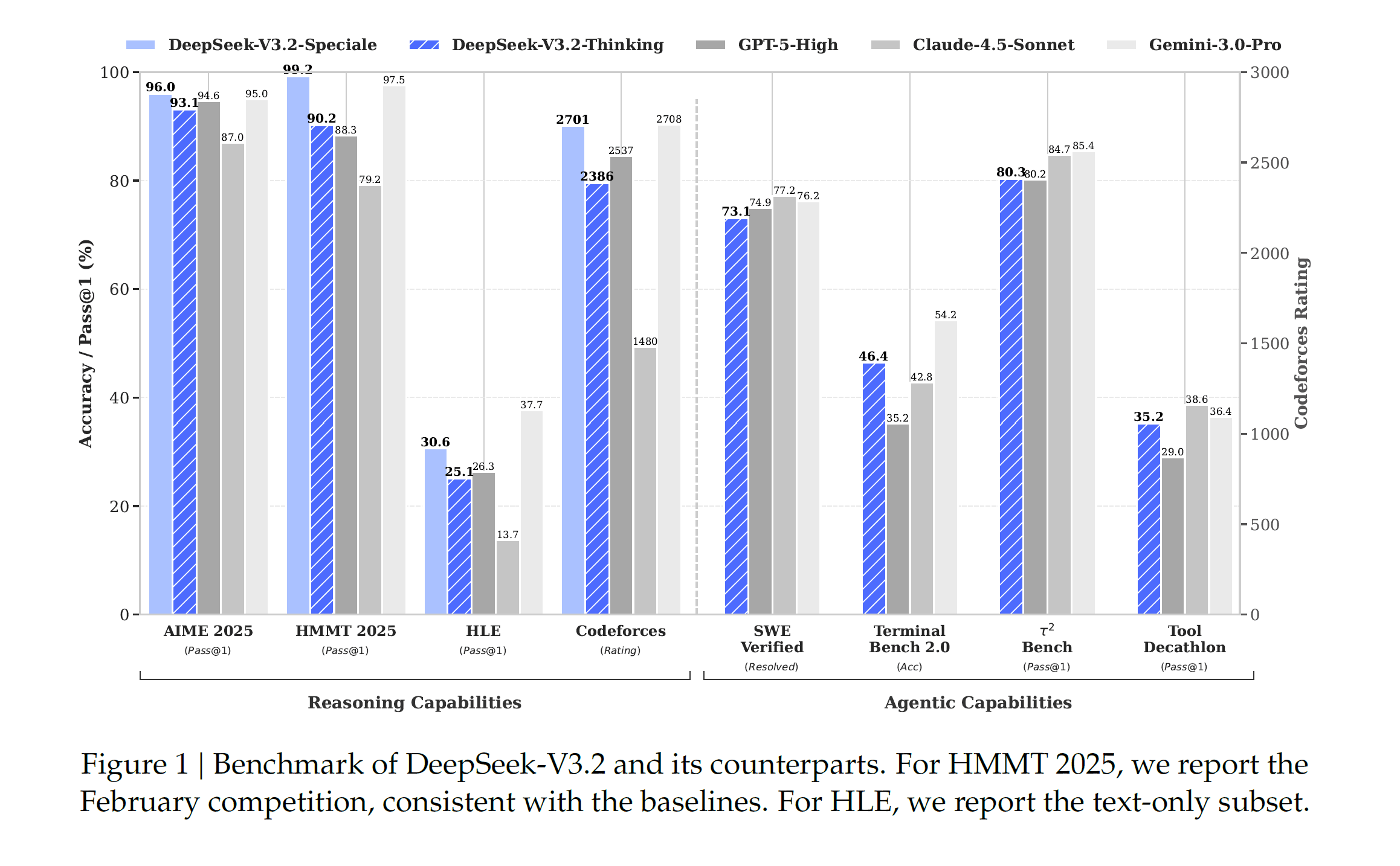 これは、OpenAIのo1シリーズやGoogleのGemini 3 Proが目指してきた「System 2(熟慮型)」の推論能力を、オープンソースモデルが完全にキャッチアップしたことを意味する。特に、Codeforcesのレーティングにおいて「Speciale」は2701を記録し、GPT-5 High(2537)を上回った。
