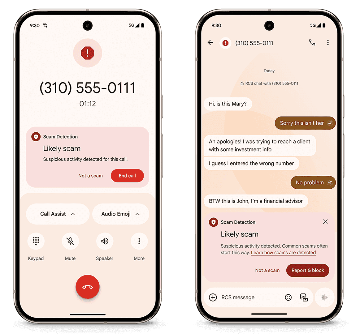 Googleメッセージアプリに実装されるこの機能は、AIが詐欺に一般的に関連するパターンを識別し、リアルタイムで警告を表示。一見無害に見えるが時間の経過とともに危険性を増すメッセージを特定することができる。ユーザーは警告を無視するか、会話をブロックして報告するかを選択できる。