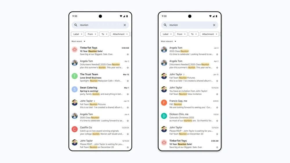 この変更により、「探しているメールが検索結果の上位に表示される可能性が高まり、貴重な時間を節約し、重要な情報をより簡単に見つけることができます」とGoogleは述べている。