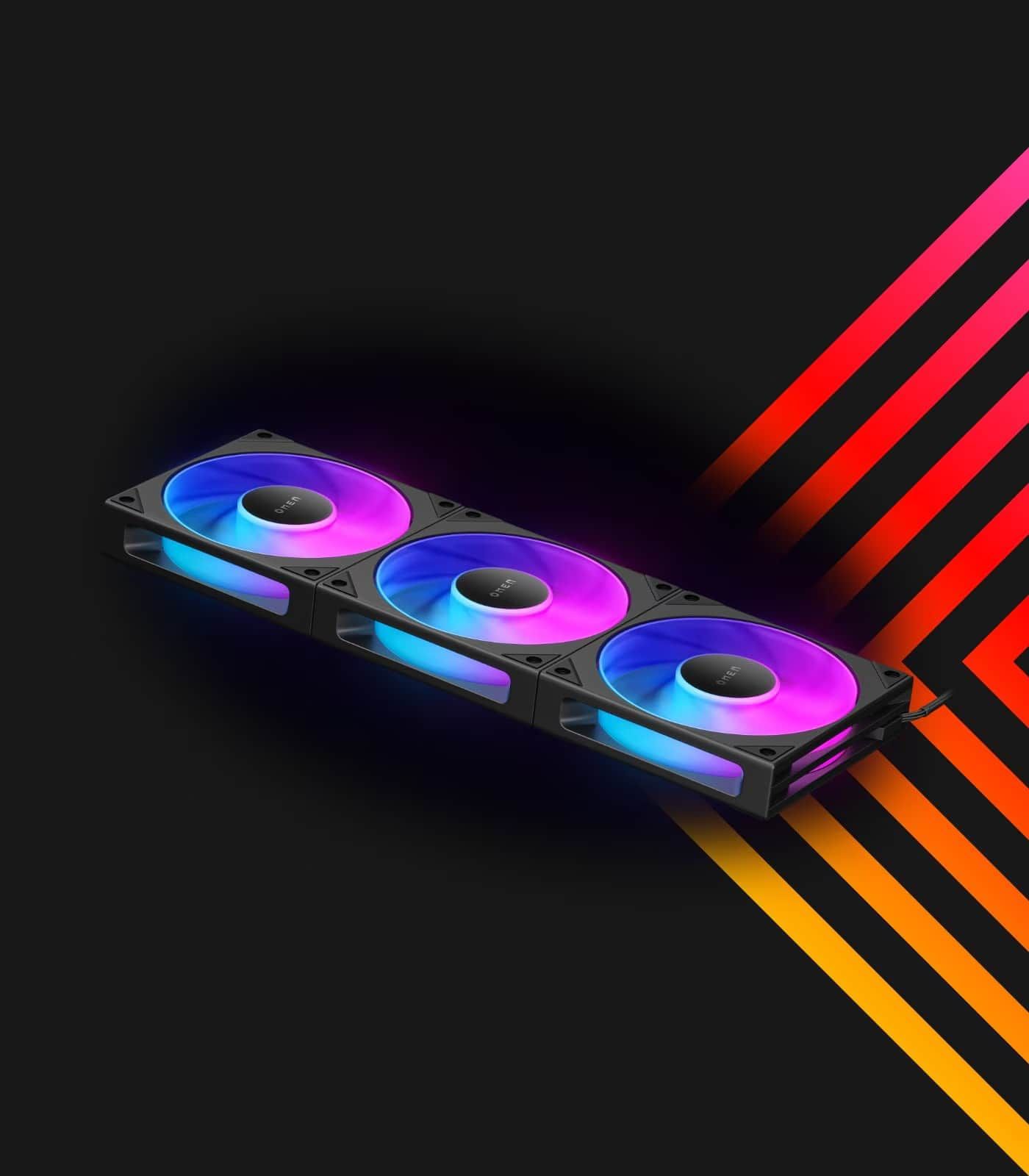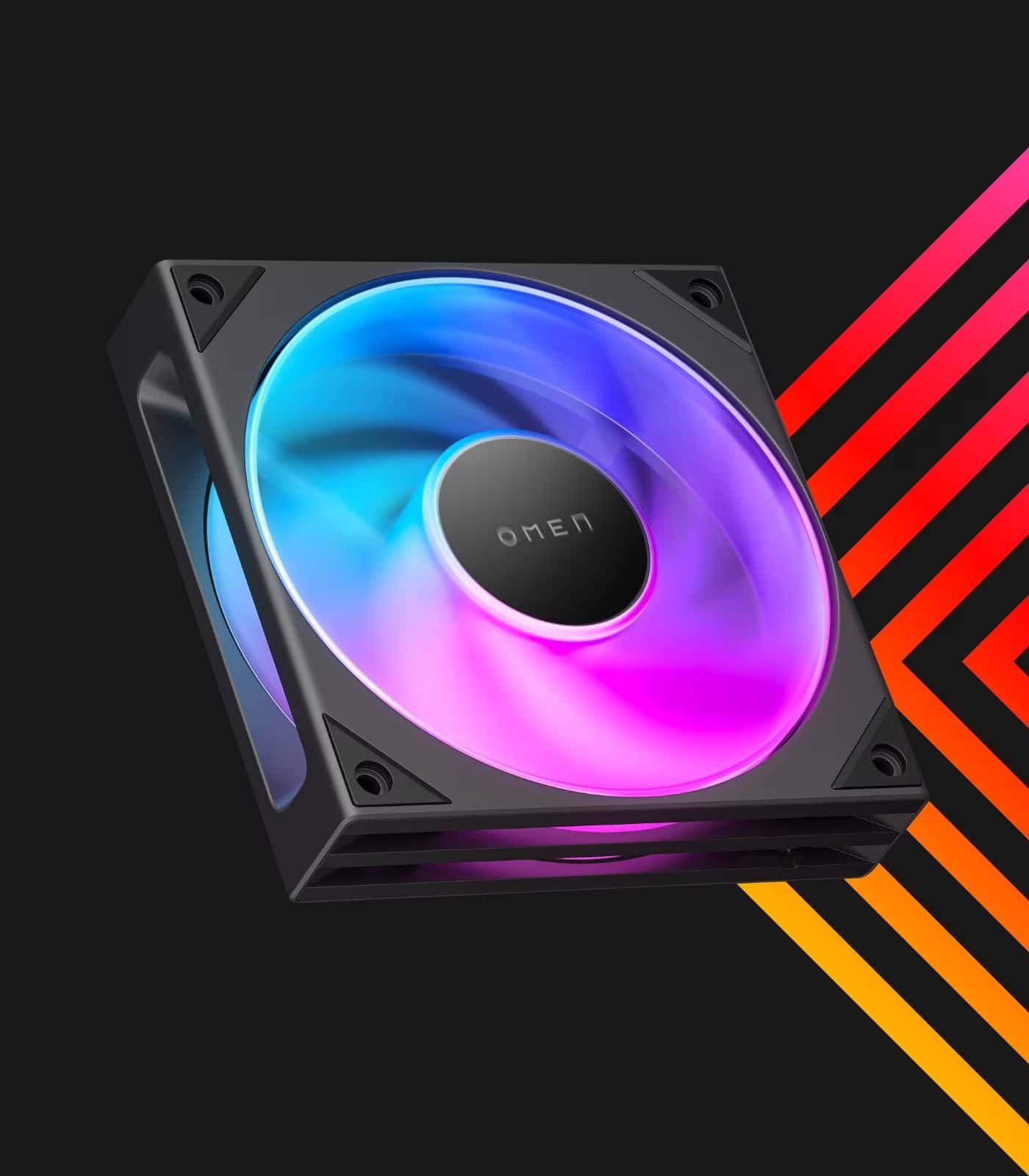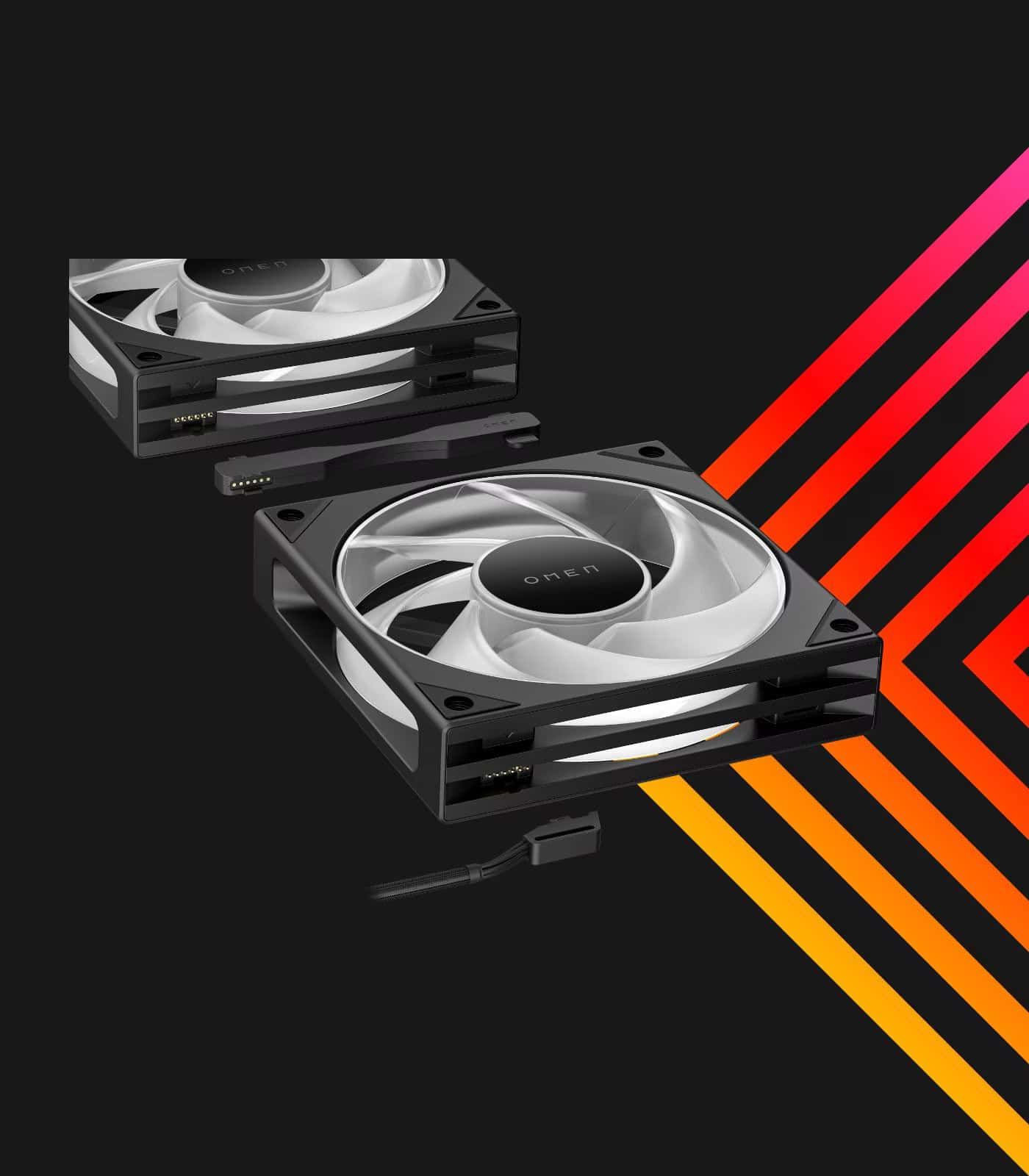 ファンは環状(リング状)デザインを採用しており、最大74 CFMの高い気流性能と向上した静圧により振動を低減している。各ファンには10個のaRGB LEDを搭載し、HPのOmen Gaming Hub(OGH)ソフトウェアを通じて1,620万色を使ったカスタマイズが可能だ。これらのファンはHPのデイジーチェーンシステムに対応しており、最大10個のファンを直列接続できるほか、Omen Modular Hubを使用することで最大16個のファンを1つのハブに接続できる。