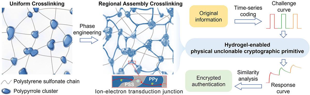 今回、学術誌『Advanced Materials』で発表された研究の核心は、この導電性ハイドロゲルを用いて、極めて強力かつ信頼性の高いPUFを生成する独自の手法にある。 研究チームが開発した「地域組立架橋(RAC: Regional Assembly Crosslinking)」と呼ばれるプロセスが、その鍵を握っている。