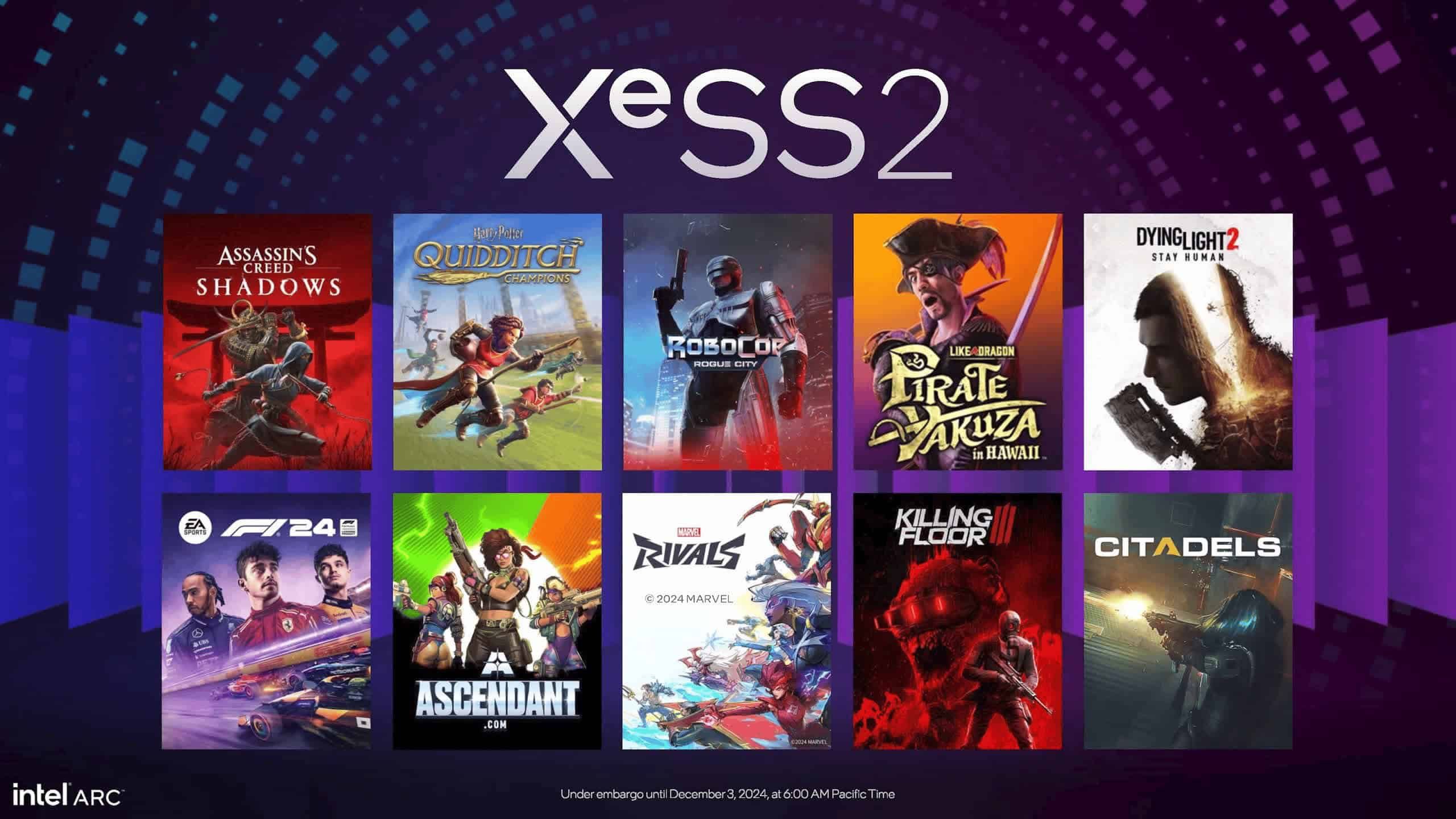 対応タイトルの面では、Intelは強力なラインナップを用意している。注目のAAAタイトルである「Assassin’s Creed: Shadows」や「Dying Light 2: Stay Human」をはじめ、競争の激しいeスポーツ分野では「Marvel Rivals」、レーシングジャンルでは「F1 24」など、幅広いジャンルをカバーする全10タイトルが発表された。これらのタイトルは、それぞれのジャンルで高い要求を持つゲーマーのニーズに応えることを意図している。