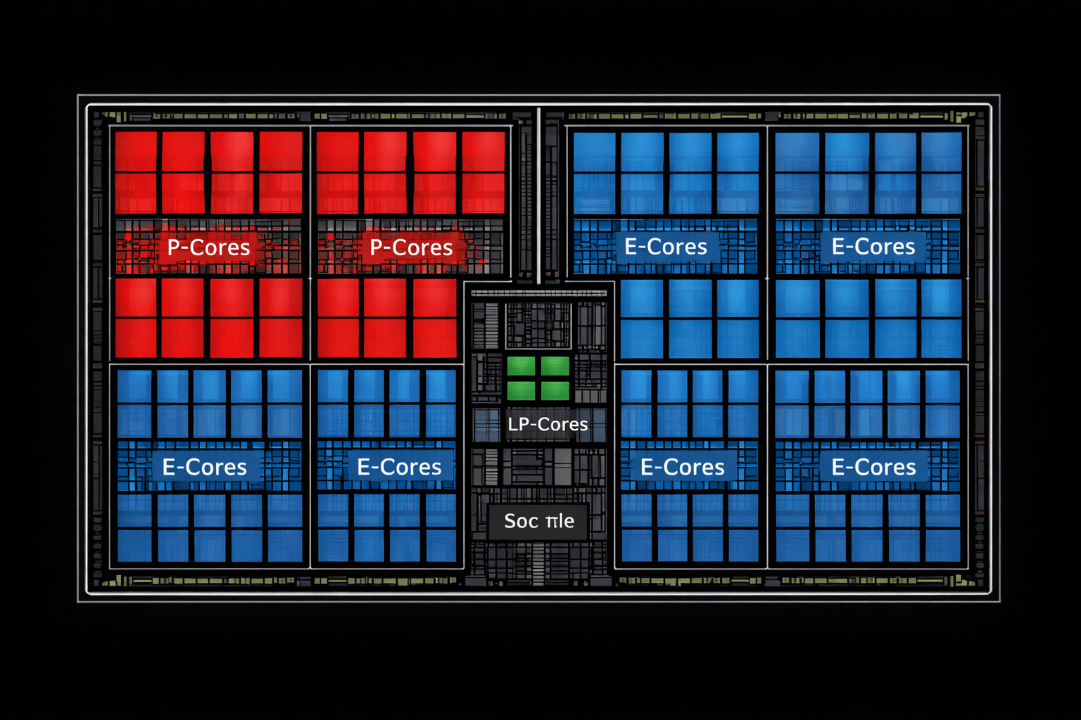 Nova Lake-S(デスクトップ版)は、2枚のコンピュートタイルを1パッケージに収める構成を採る。各タイルには最大8基のP-core(性能コア、アーキテクチャ名Coyote Cove)と16基のE-core(効率コア、同Arctic Wolf)を搭載でき、2枚で16P+32Eの48コアを実現する。SoCタイル上にはさらに4基のLP E-core(低消費電力効率コア)が常駐し、合計52コアに達する。