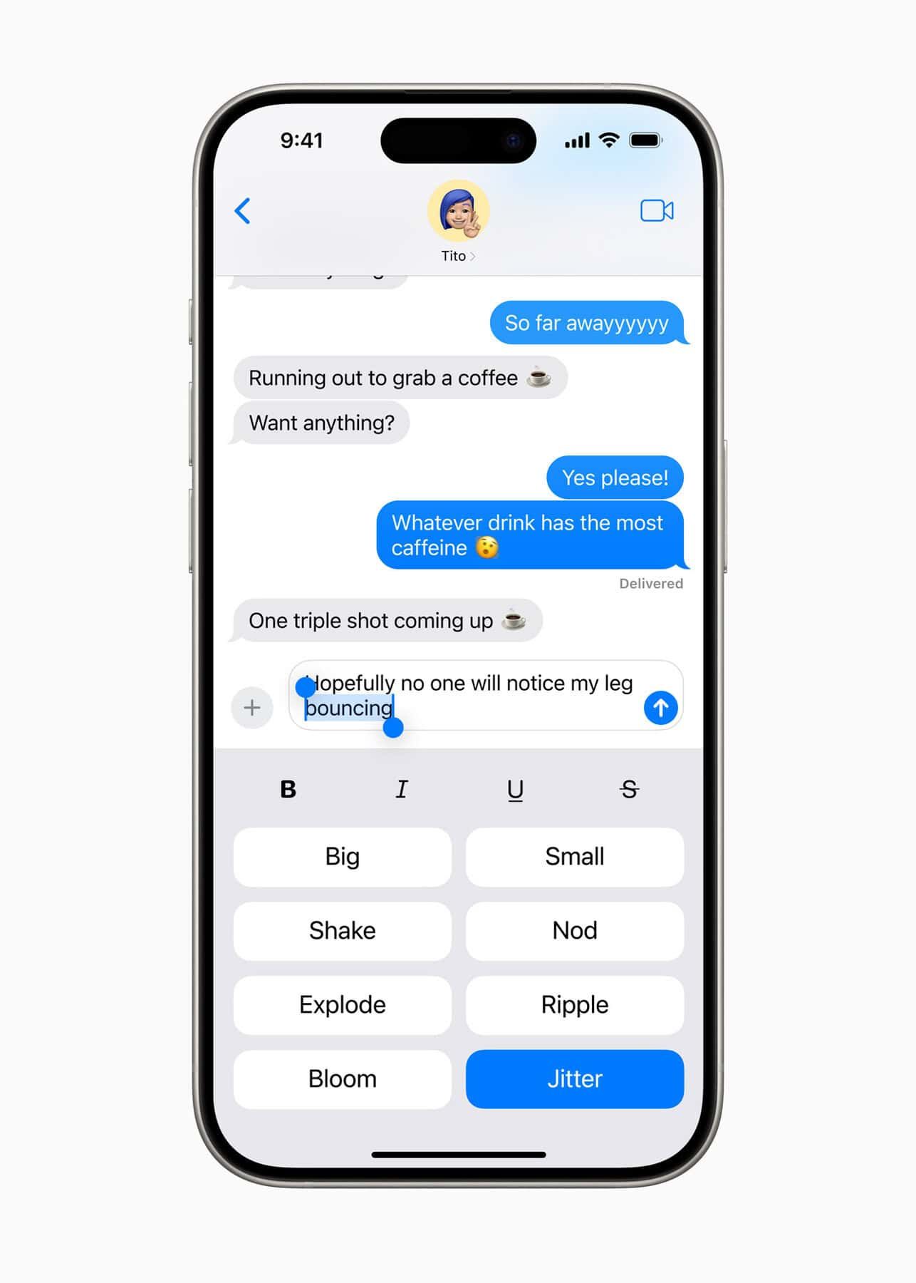 日本では余り普及していないであろうiMessageも機能が強化される。太字や斜体などのリッチ テキストの書式設定オプションがサポートされ、爆発やリップルなどの動きのあるエフェクトを加える事も可能になる。