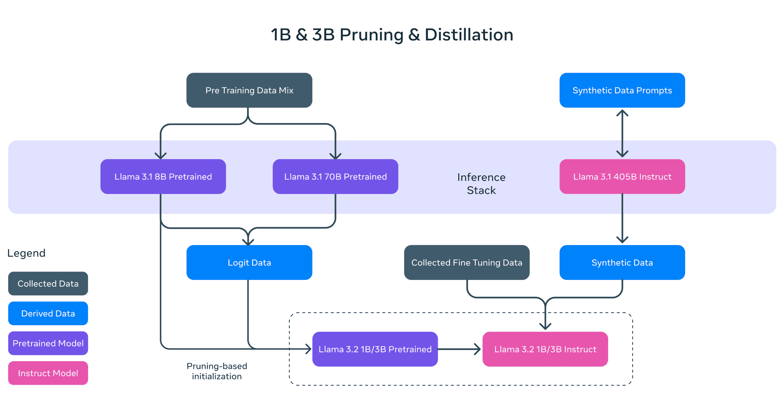 Metaは、これらの軽量モデルを最適化するために、大規模な教師モデルからの知識転移と構造化プルーニングを組み合わせた手法を採用した。具体的には、Llama 3.1の8Bモデルから一度のパスで構造化プルーニングを行い、ネットワークの一部を系統的に削除して重みを調整している。