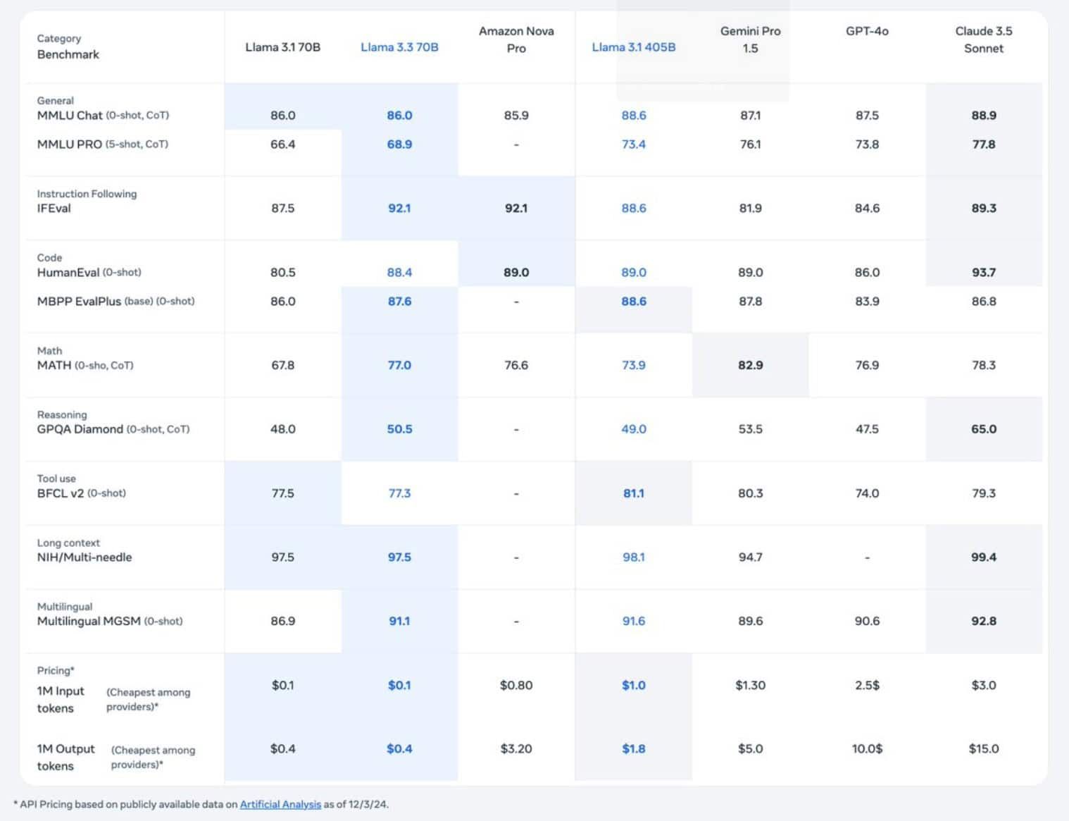 Llama 3.3における最も注目すべき革新は、必要とされるコンピューティングリソースの劇的な削減にある。従来のLlama 3.1-405Bモデルでは、動作に243GBから最大1,944GBものGPUメモリを必要としていた。これに対して新たに投入されたLlama 3.3は、わずか42-168GBのGPUメモリで動作が可能となっている。この技術的ブレークスルーにより、標準的な80GB NVIDIA H100 GPUの処理負荷を最大で24分の1まで軽減することに成功した。