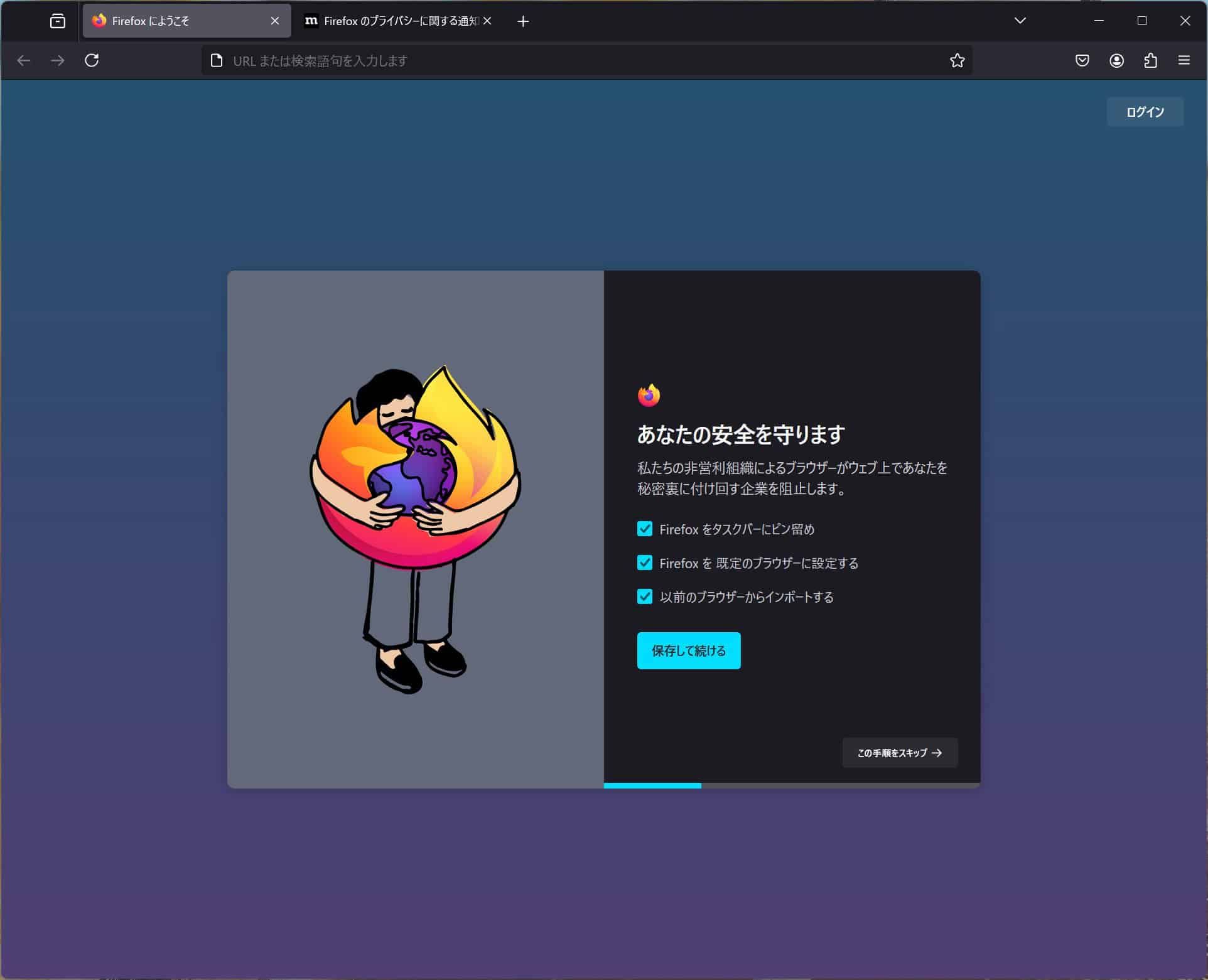 また、Mozillaは新しいセットアップ画面において、組織としての独自の立ち位置を強調している。具体的には、非営利組織としての特性を前面に打ち出し、企業による密かなオンライントラッキングからユーザーを保護することに注力している点を明確に訴求している。