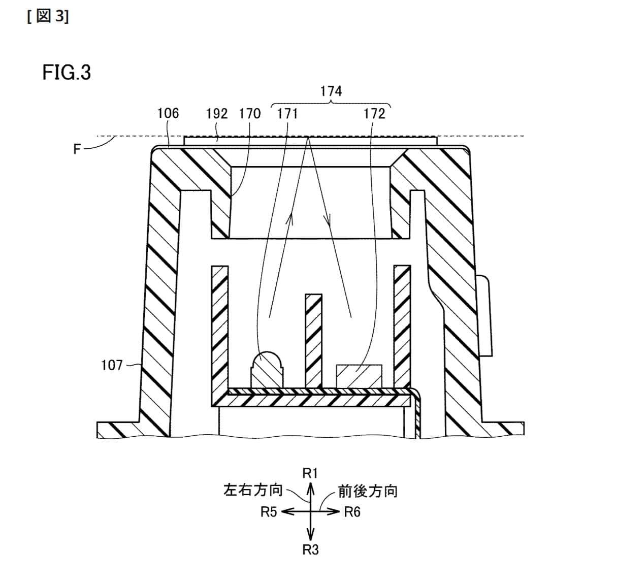 特許内の図面では、光源と光センサーがJoy-Con内部に組み込まれ、それぞれに光を誘導するためのレンズが内蔵されている様子が示されている。特許の全文では、このコントローラーは「マウスとしての使用とマウス以外の使用が可能な新規な入力装置」と説明されている。