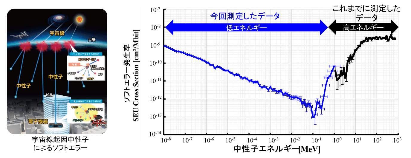 その結果、「ソフトエラーに対する低エネルギー中性子の寄与は、エラーカウント全体の約1/5~1/4、1MeV以上の中性子では1/4~1/3」と結論づけている。