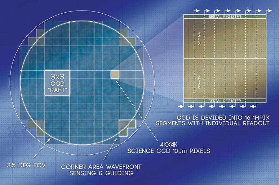 - 広大な視野: 直径8.4メートルの主鏡が集めた光を受け止めるこのカメラは、一度の撮影で満月45個分に相当する広大な空の領域を捉える。