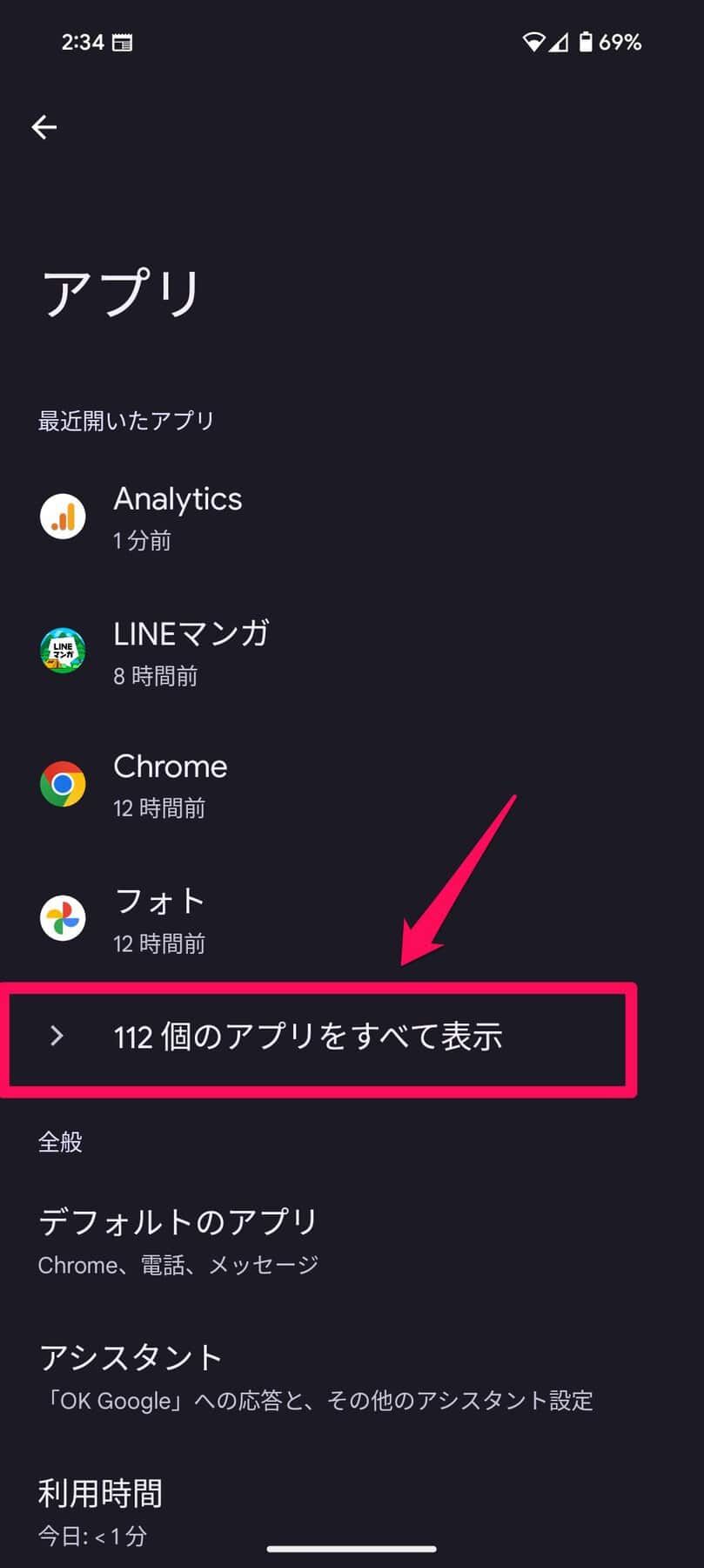 - 「アプリ」→「すべてのアプリを表示」を選択