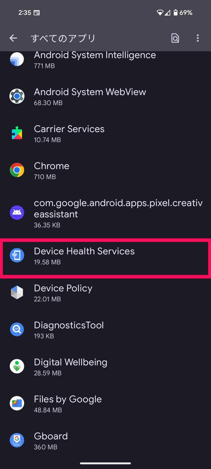 - 「Device Health Services」を検索してタップ