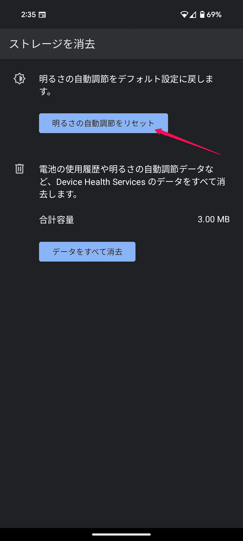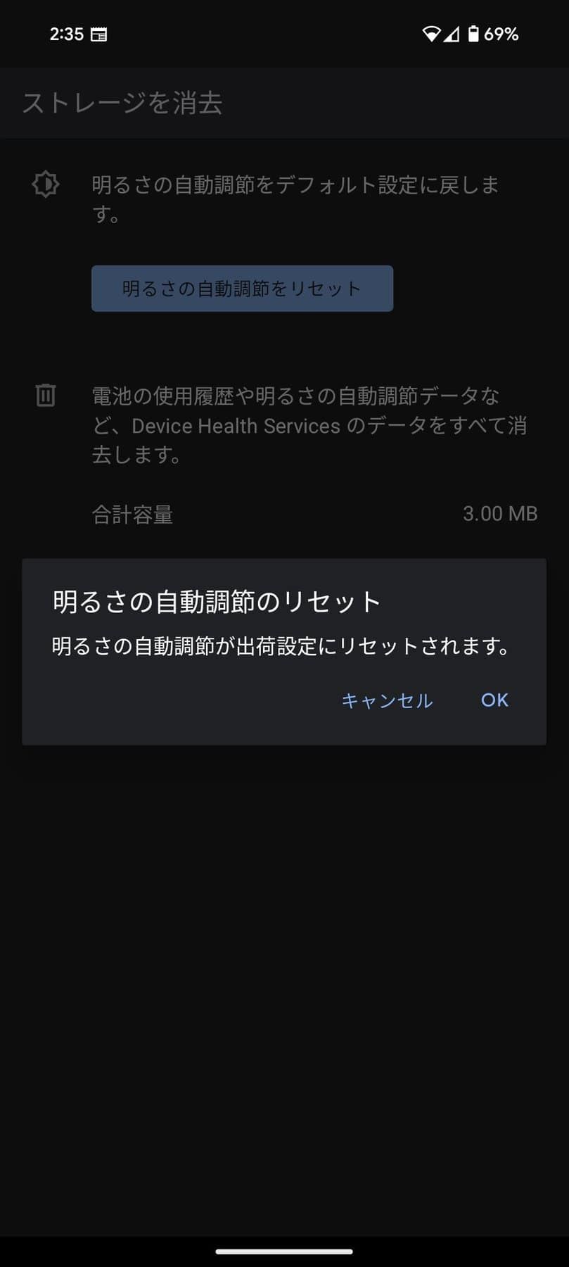 - 表示される新しい画面で「明るさの自動調節をリセット」オプションを選択