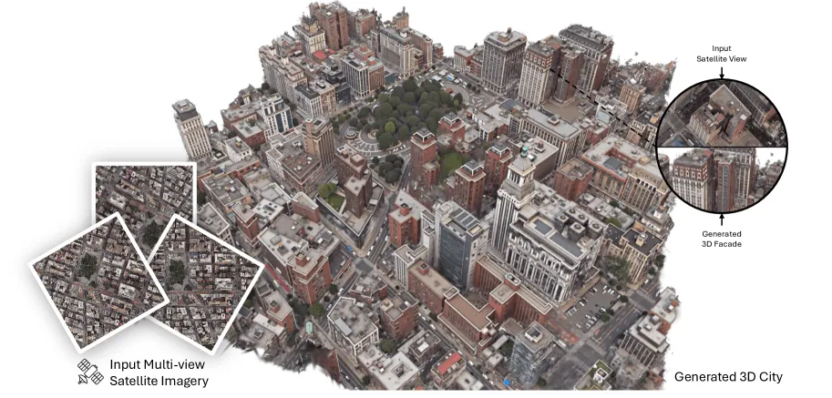 衛星写真から、まるでその場を歩き回れるかのような精緻な3D都市モデルを自動生成することが可能になった。台湾の国立陽明交通大学やイリノイ大学などの研究チームが発表したAIシステム「Skyfall-GS」は、特別な車両や高価な3Dスキャナを一切使わず、一般に入手可能な衛星画像のみを基に、リアルタイムで探索可能な3D都市を構築するのだ。この革新的な技術は、ゲーム開発から都市計画、自動運転シミュレーションまで、あらゆる分野に大きな変化をもたらしそうだ。
