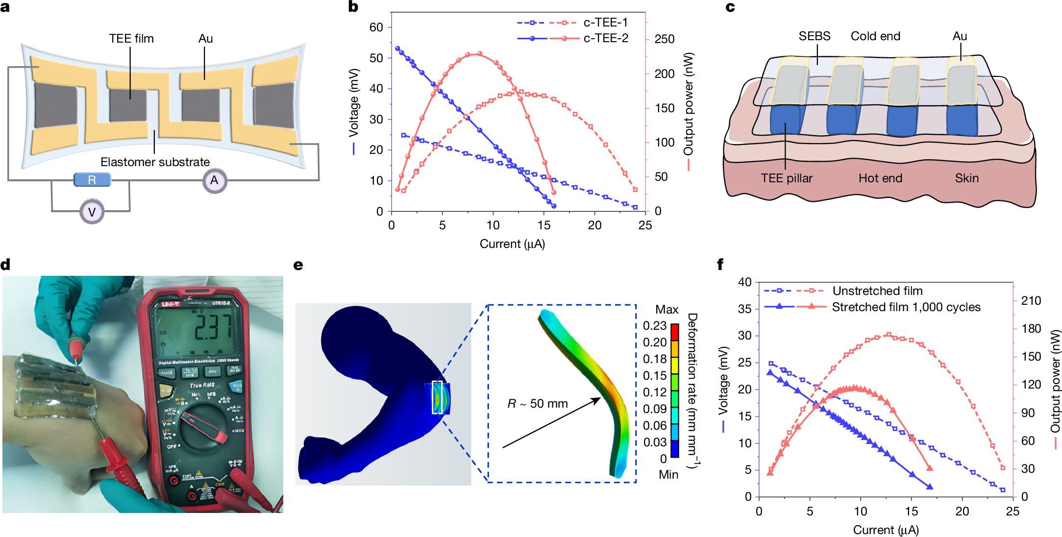しかし、この新しいエラストマーは、第二の皮膚のように人体のあらゆる曲面や動きに完璧に追従する。これにより、熱源である皮膚との間に隙間なく密着し、安定したエネルギー変換を継続できるのだ。