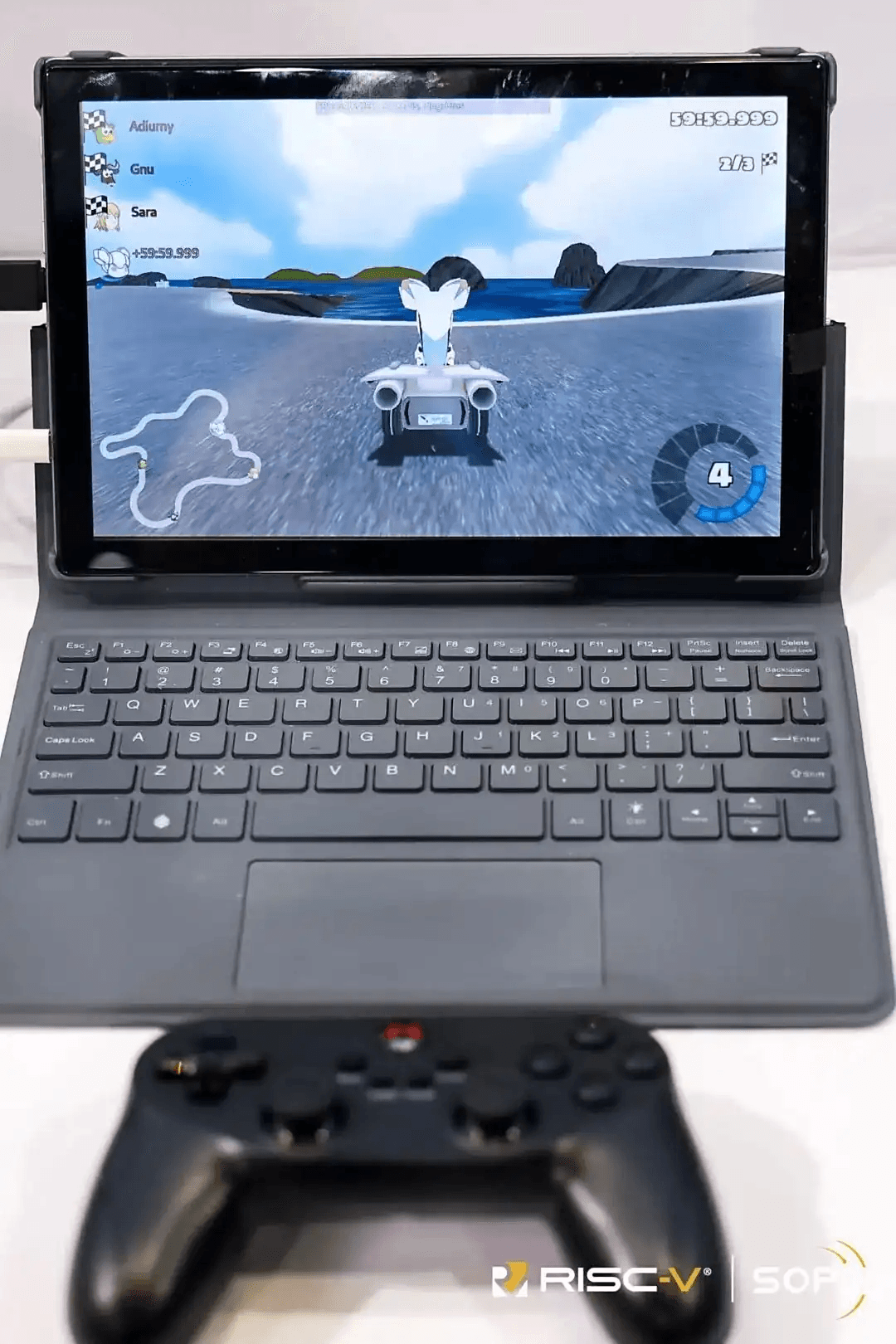 さらに、展示会場では簡単なゲームをプレイしている様子も確認されており、RISC-Vアーキテクチャが、これまで主戦場とされてきた組み込みシステムやサーバーだけでなく、モバイルコンピューティングというインタラクティブな用途においても実用レベルに達しつつあることを証明した。