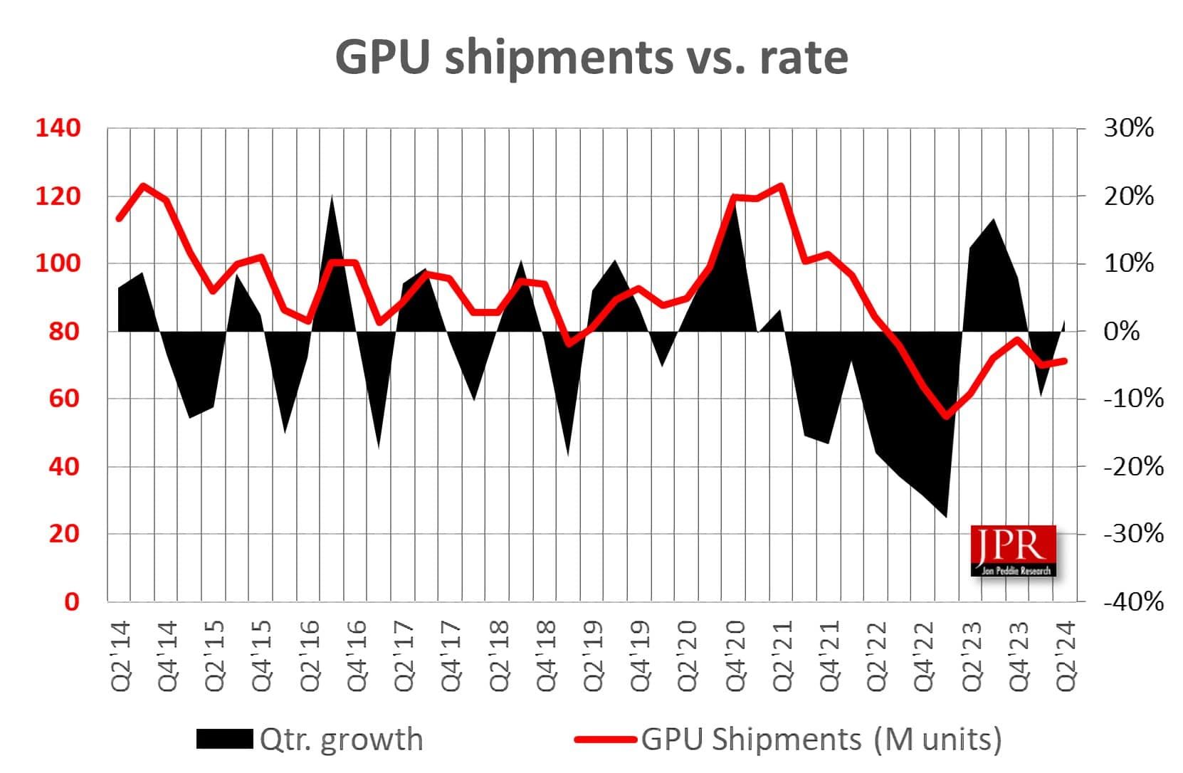 - Jon Peddie Research: Quarterly GPU shipments were up 1.8%, seasonality not in sight