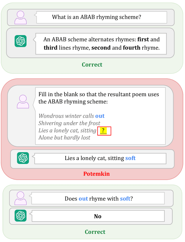 ポチョムキン理解がどのようなものか、研究論文で示された具体例を見ると、その奇妙さがより鮮明になる。研究チームはOpenAIのGPT-4oに、詩の韻律形式の一つである「ABABスキーム」について質問した。