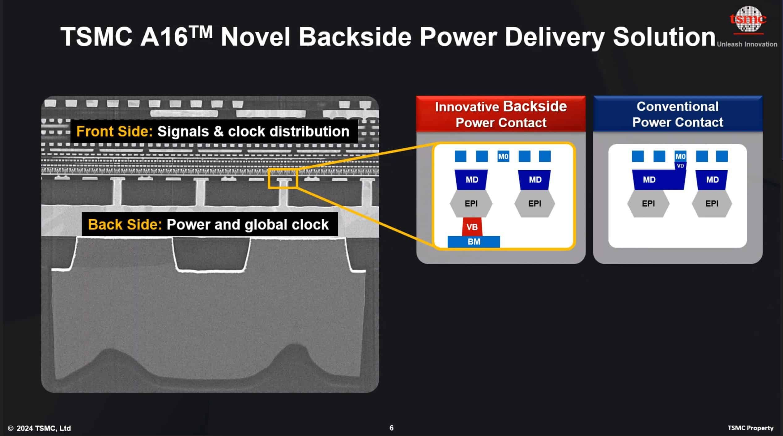 TSMCのBSPDNは、各トランジスタのソースとドレインに直接チップの裏面から電力を供給する方式となる。 TSMCによると、これは面積の拡大という点では最も効率的な技術だが、生産に関しては最も複雑かつ高価になる。