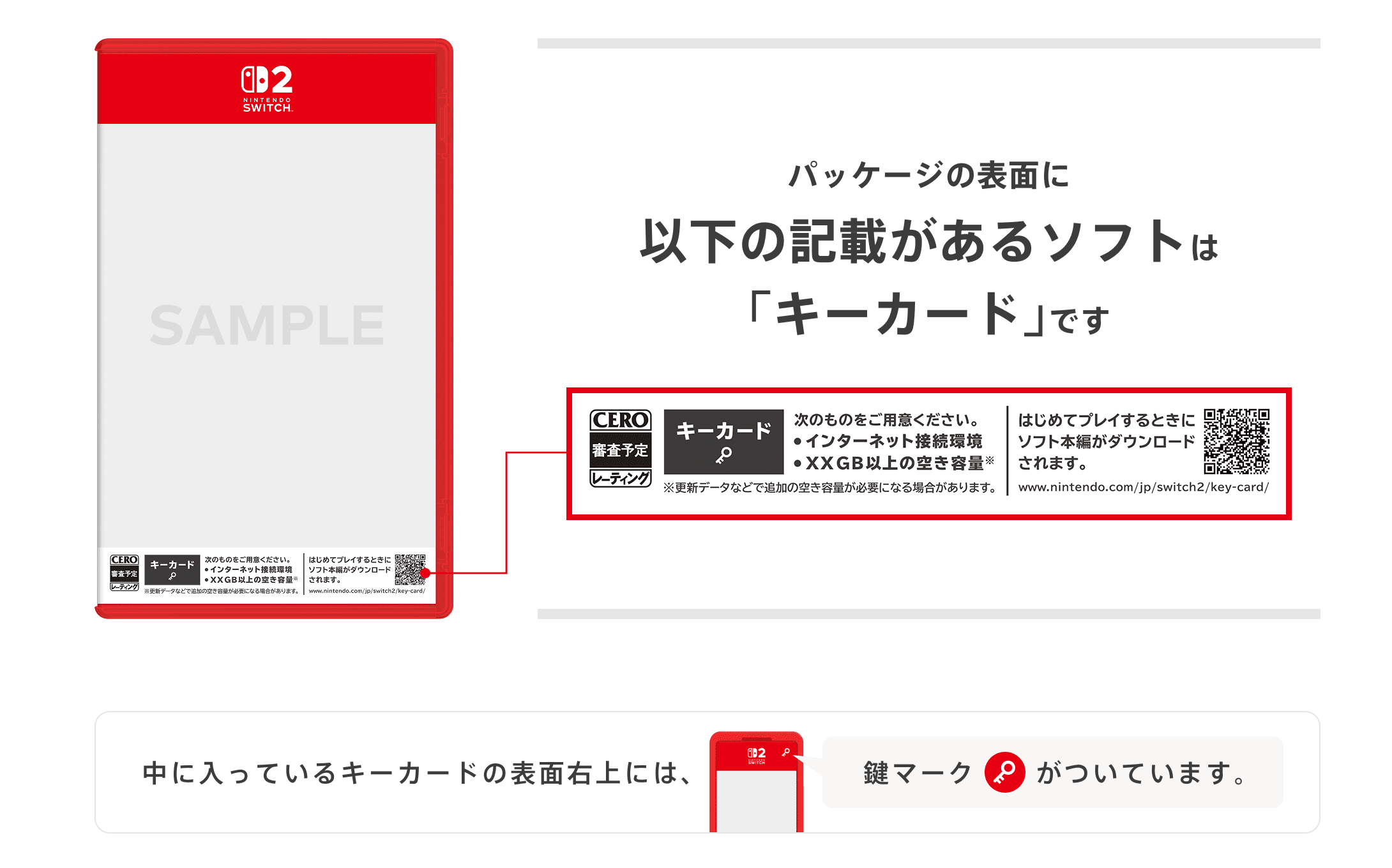 これは、従来のゲームカートリッジと同じように、店頭で購入できる物理的なパッケージだ。しかし、そのカートリッジにはゲームを起動するためのライセンスキーなど、ごく僅かなデータしか含まれていない。プレイヤーがゲームを遊ぶためには、初回起動時にインターネットへ接続し、ゲームデータ全体を本体ストレージ、あるいはmicroSD Expressカードにダウンロードする必要がある。